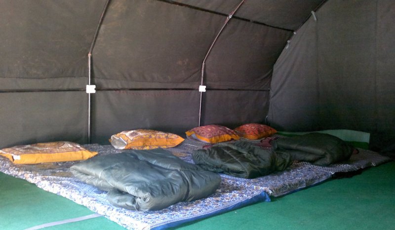 (Inside Tent there is Electricity, Mobile Charging Points, Beds, Multi layered Flooring, etc)